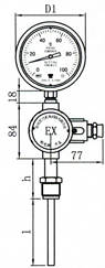 注: 1、溫度表的插入深度L可供選擇的系列:100,150,200,300,400,500,750,1000,1250,1500,2000等,也可根據用戶需要定制。 2、保護管采用不銹鋼1Cr18Ni9Ti制造。 |